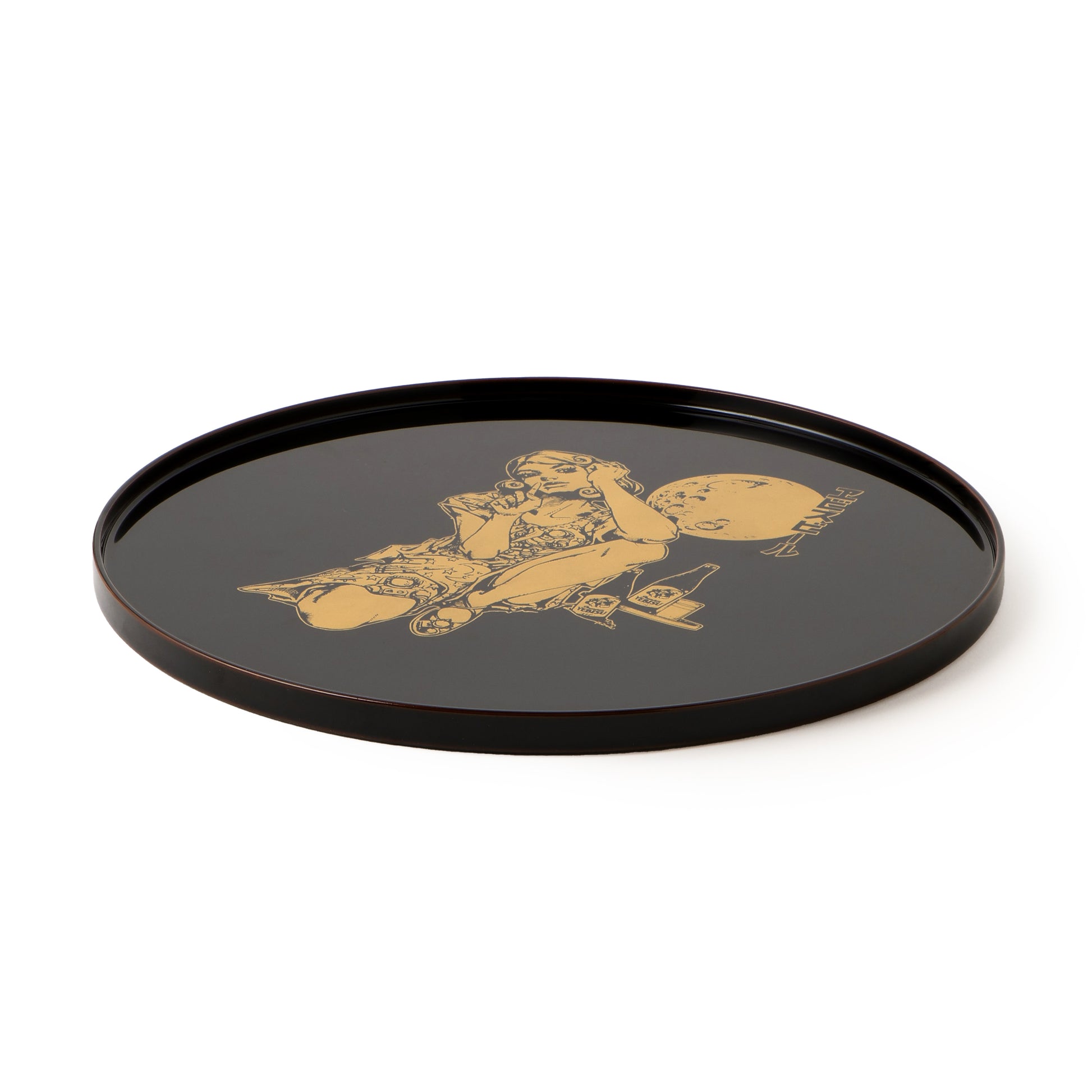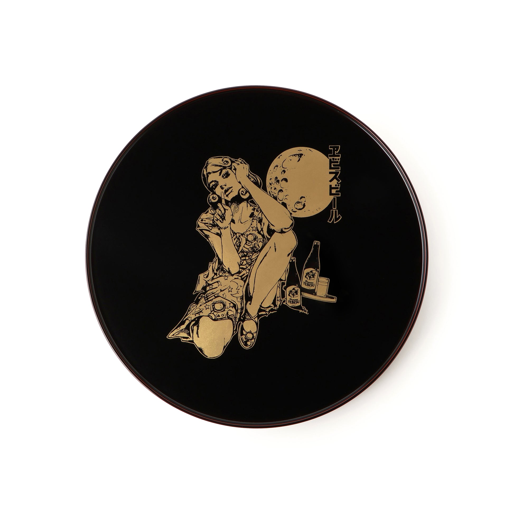皇室ゆかりの山田平安堂作の丸盆。荒木飛呂彦氏描き下ろし美人画「ムーンライトロケット」