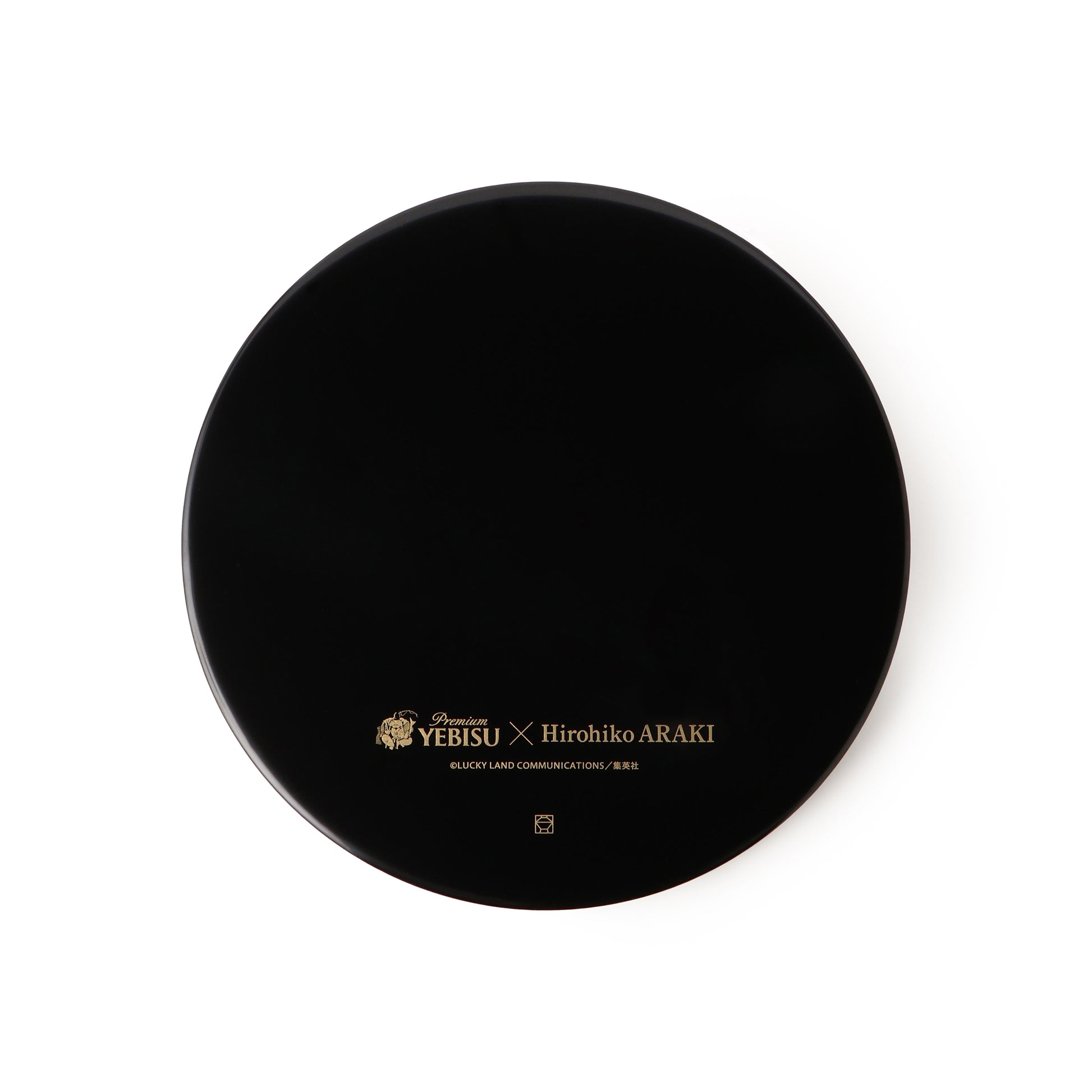 荒木飛呂彦氏描き下ろし美人画「ムーンライトロケット」を全面にプリントした丸盆。サイズ320φと瓶ビール、グラスとおつまみなどをのせて運ぶのにちょうどいいサイズ感です。皇室にゆかりのある、山田平安堂の別注品。その伝統の美技で生み出される逸品は、贈り物としても高く評価され、外務省や大使館にも商品を納めている。今回特別に販売されるお盆は、基本に忠実であることを体現する山田平安堂が、天然木を使用し漆塗りで丁寧に仕上げました。しっとりとした透明感が美しく、古来より詫びさびを重んじる日本人たちに愛されてきた趣ある商品です。山田平安堂が手掛ける和の伝統美と、荒木飛呂彦氏が描いた現代版の美人画「ムーンライトロケット」が融合した作品です。